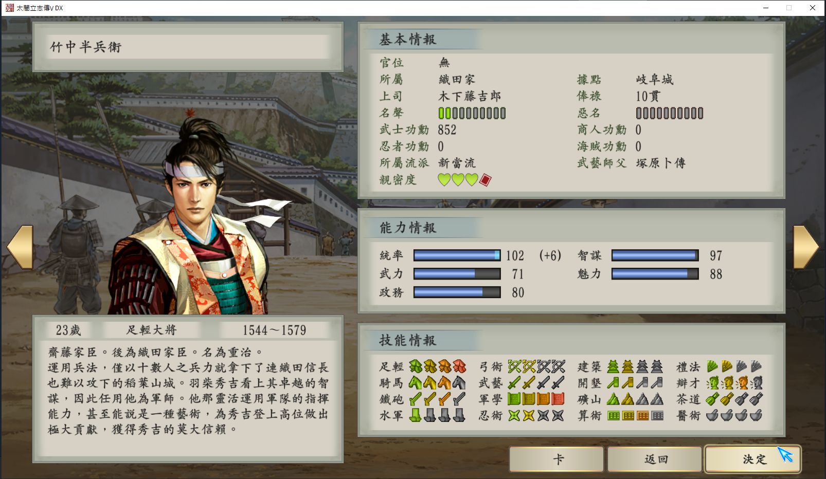 還有前述的武家宅拜訪武將, 因為每次都會出現武將資訊, 所以一定要去按右下的"決定"才能進去