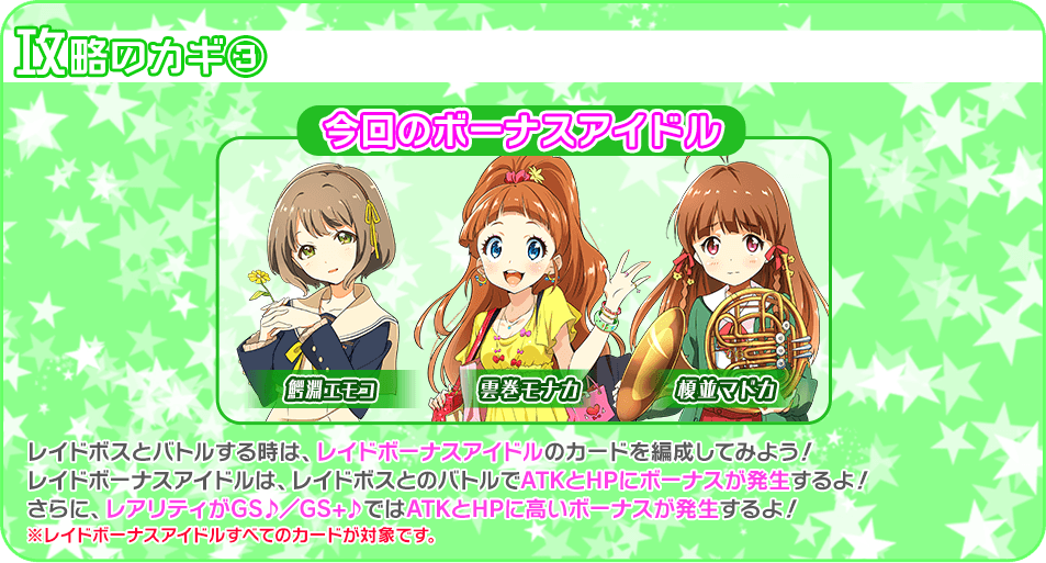 這次RAID活動的能力加成角色是這三位!